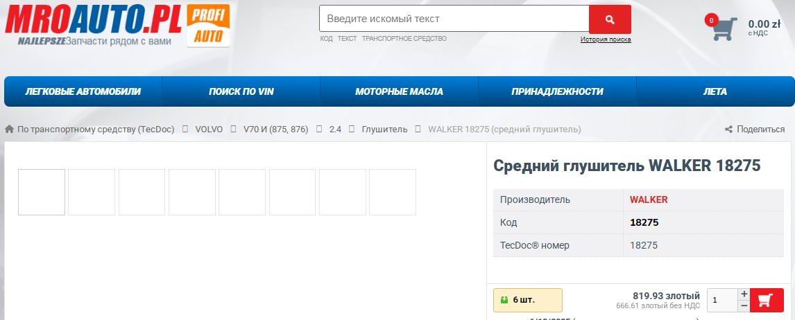 Глушитель WALKER (не габарит 2,3м 14 кг.)