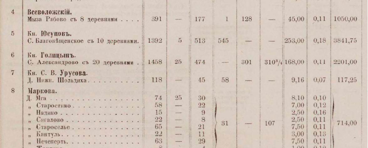 На этомъ основаніи, составлены извлеченія изъ описаній помѣщичьихъ имѣнiй въ видѣ таблицъ, заключающихъ въ себѣ слѣдующія графы:
