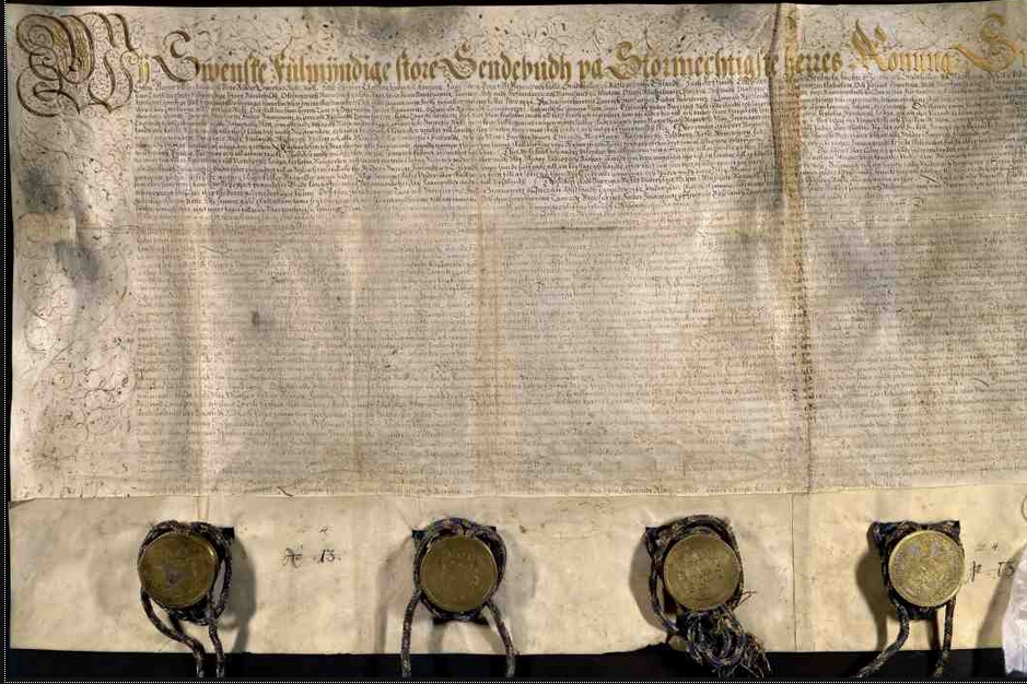 1 мая 1617 года. Ратификация шведского короля Густава Адольфа на Столбовский договор о вечном мире между Россией и Швецией. Пергамент. Шведский язык, титул короля выполнен золотой краской, прошита шёлковым шнуром. Подпись-автограф короля. РГАДА